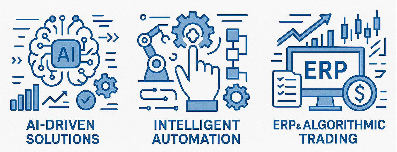 At Smart Business & Trade, we empower organizations to thrive in the digital era through cutting-edge AI-driven solutions, intelligent automation, and data-powered decision-making. As pioneers in business process optimization (BPMS), enterprise resource planning (ERP), and algorithmic trading, we bridge the gap between technology and business excellence. Our tailored services—from advanced data analytics to OT cybersecurity—help clients streamline operations, mitigate risks, and unlock growth. With a focus on innovation, security, and measurable results, we partner with you to turn challenges into competitive advantages. Let’s build the future, smarter.